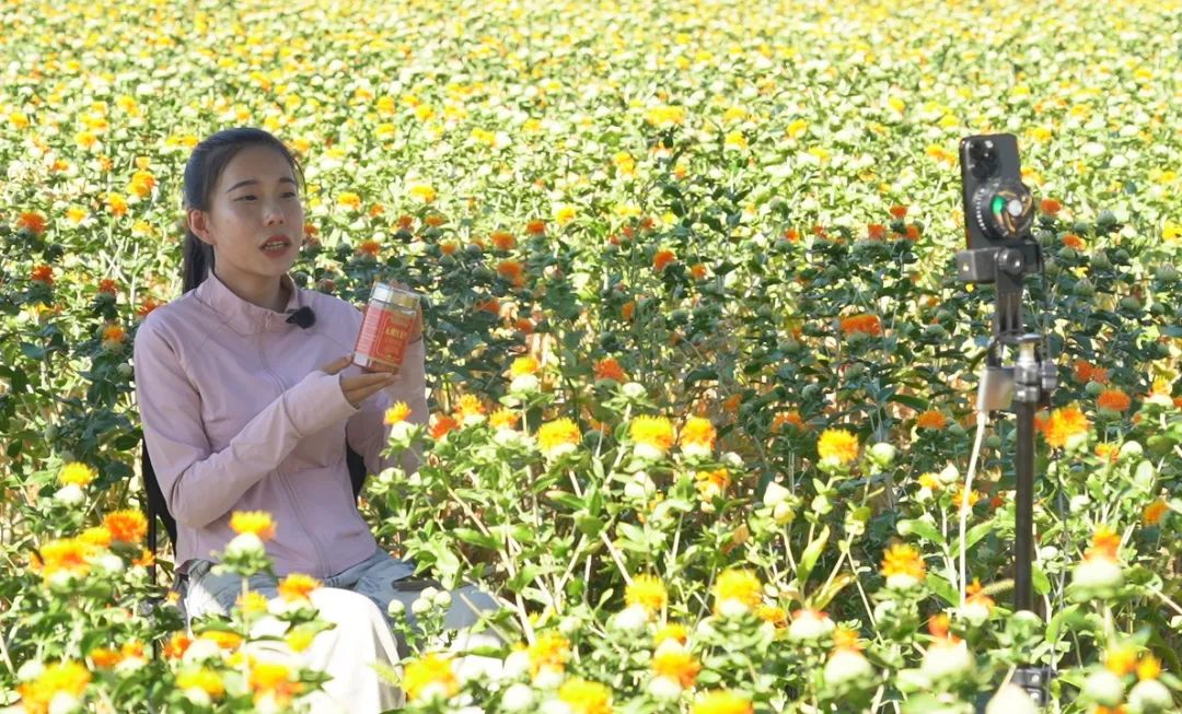 为生动展示推介红花这一特色农产品的生长过程,该公司主播通过镜头介绍红花从播种、生长到采摘的全过程,推介红花丝的药用和养生价值,展示红花籽油的清亮色泽和对人体健康的益处,与粉丝朋友们互动。