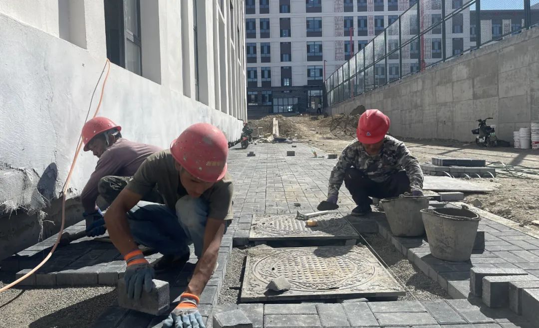 人行道铺花砖。塔城地区融媒体中心通讯员阿依登摄