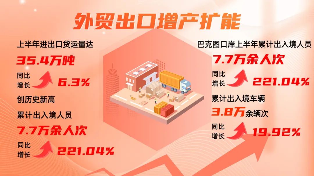半年成绩单(十七) | 成绩亮眼!巴克图口岸半年货运量35.4万吨破纪录 出入境人员增长221.04%