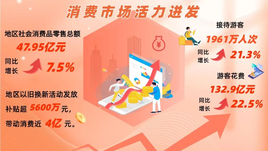 1—6月,地区社会消费品零售总额实现47.95亿元,同比增长7.5%。