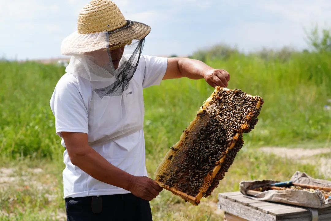 这正是养蜂业的“双重价值”——除了产蜜,蜜蜂还是农作物的“天然授粉师”。“蜜蜂给作物授粉,作物开花给蜜蜂提供蜜源,这是互相成就的事。”周志勇说。26年来,他的蜂群走过塔城、裕民的田间地头,累计为上万亩农作物授粉,成了农户们眼中的“增产好帮手”。