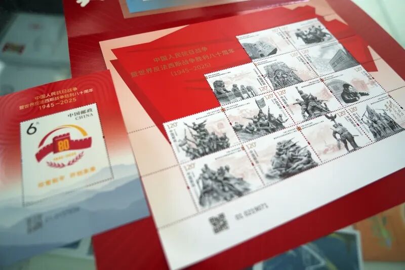 据悉,根据党中央有关中国人民抗日战争暨世界反法西斯战争胜利80周年纪念活动安排,中国邮政此次发行的纪念邮票1套共13枚,小型张1枚,全套邮票面值20.8元。邮票全国计划发行数量为600万套,小型张500万枚。