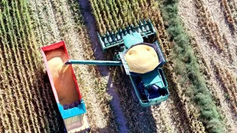 托里县玉米丰收航拍图。托里县融媒体中心提供