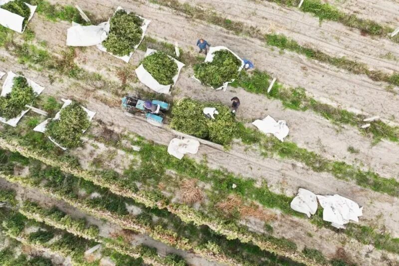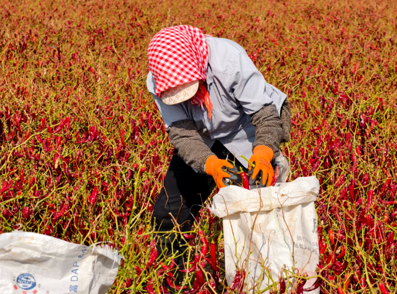 采收工人忙碌而有序地采摘辣椒。乌苏市融媒体中心提供