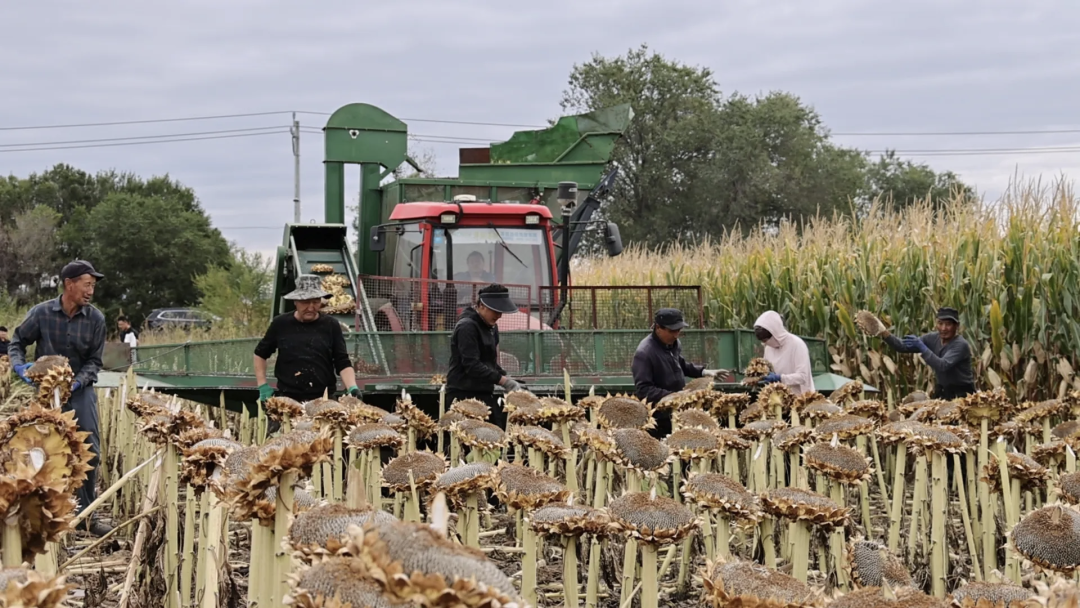 额敏县是打瓜的重要产区。打瓜种植面积达到了13.14万亩。大型机械在田间轰鸣作业,高效完成脱粒,确保了丰产的果实能顺利转化为丰收的收益。