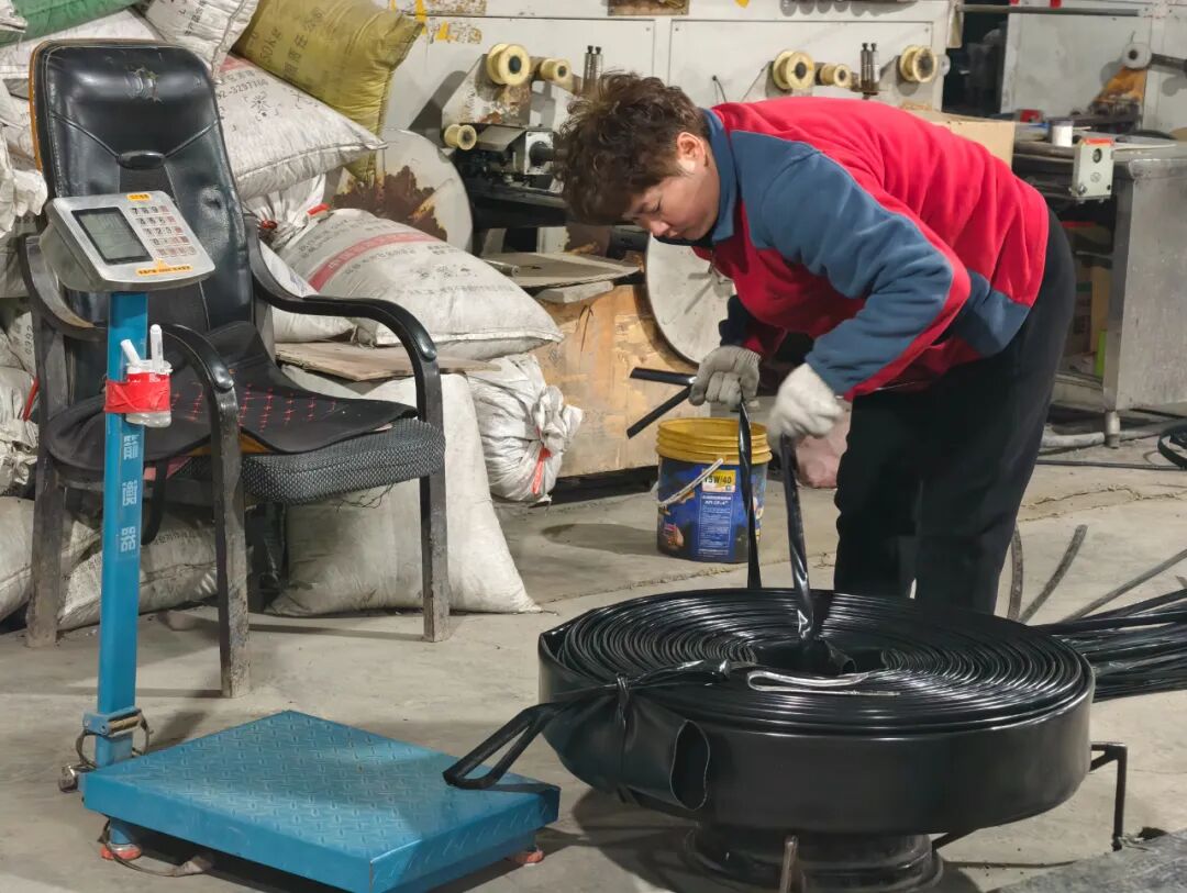 据介绍,乌苏市西湖镇庆达绥丰塑业有限责任公司是一家集废旧滴灌带回收加工再利用及滴灌带、水袋加工销售为一体的企业。公司负责人宋恒军说:“今年,公司整合了3个车间、4条贴片式滴灌带生产线,不仅大大缩短了生产周期,还带动周边村民就近就业,增加收入。”