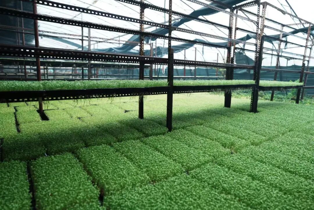 一进大棚,绿油油的芽苗菜映入眼帘。