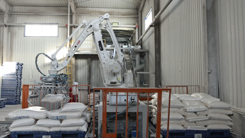 机械臂在生产车间作业。