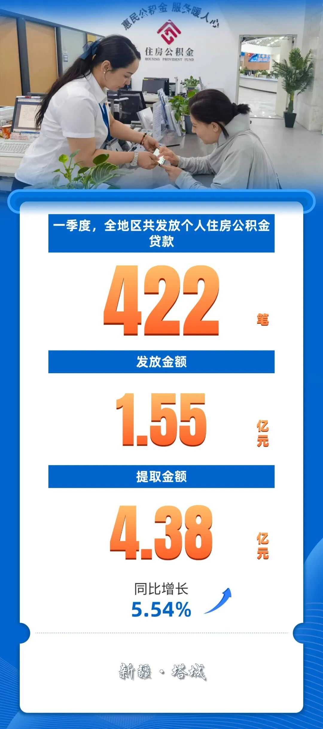一季度,塔城地区住房公积金管理中心持续落实住房公积金惠民新政,不断优化缴存、提取、贷款全链条服务举措,辖区公积金各项业务运行稳中有进、质效同步提升,住房保障作用持续凸显,切实把政策红利转化为群众安居福祉,为职工安居乐业和区域房地产市场平稳健康发展保驾护航。