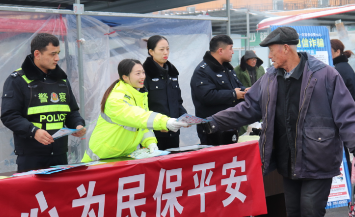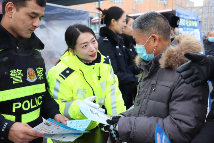 1月7日,乌苏市公安局交警大队联合各警种部门,在北园春市场集中开展以“砥砺奋进110,一心为民保平安”为主题的宣传活动。