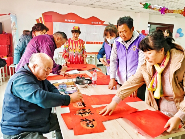乌苏市汇福园小区居民张新荣领到了寓意美好的春联,开心不已。他说:“书法老师们现场写春联,和买来的春联相比,感觉完全不一样,贴这样的春联过年,更有年味!”