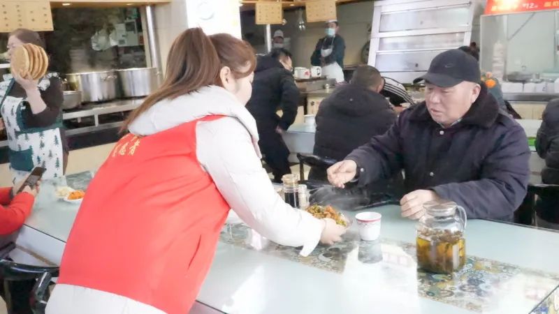 社区志愿服务者在伊万大叔社区老年食堂帮忙,为老人送上温暖午餐。