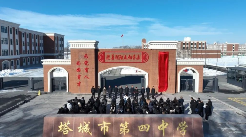 随后,沈阳市选派管理团队一行来到塔城市第四中学,参观校园环境、学校餐厅及宿舍楼等。同时,塔城市举行两所中学为沈阳市教育研究院附属学校揭牌仪式。