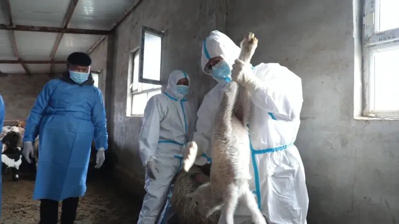 自治区动物疾病预防控制中心细菌室副主任特列克·库拉别克说:“布病是通过牲畜传染给人,在人的体内分为两种,一个是急性,一个是慢性,如果在急性期间可以痊愈,但是转为慢性的时候就不好治愈。接羔育幼期间,最主要的威胁就是胎盘,包括母羊的分泌物或者是死胎等,有些牧民、村级防疫员在接羔的时候由于不注意防护措施,比较容易感染布病。我们一定要戴口罩、戴手套、穿防护服,条件允许的情况下穿鞋套,还有戴眼罩,这样才能有效防控布病。”