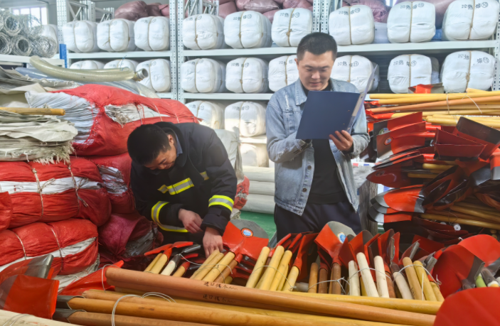 在塔城市水利局物资储备库,编织袋、无纺布、木桩等防洪物资摆放整齐,工作人员正忙着清点防洪物资。目前,塔城市已储备麻袋0.2万条、编织袋4.5万条、铁丝网片0.05万片、桩木4.05立方米、冲锋舟2艘、救生衣30件。同时,对辖区内存在安全隐患的河道、易发融雪型山洪区域等险工险段进行了“拉网式”排查,及时与气象部门联系,了解气象信息,掌握天气变化,提高防灾避灾能力。