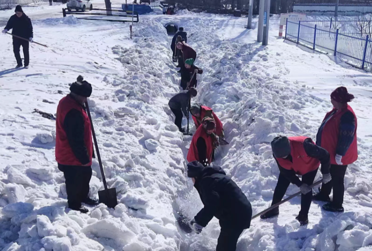 村里由于地势较低,每年上游的积雪融化后汇集到这儿,如不及时清理泄洪渠,就容易发生洪灾。这几天,村委会和工作队把村民们组织起来,对村里的泄洪渠积雪进行清理疏通。