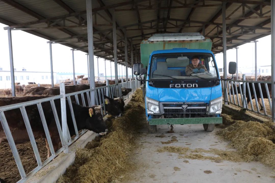 工作人员开车给牛喂草。塔城地区融媒体中心记者汪春林摄