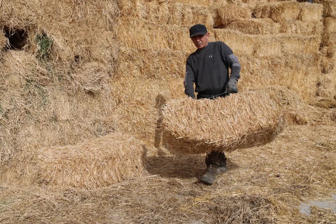 工作人员在搬草。塔城地区融媒体中心记者汪春林摄