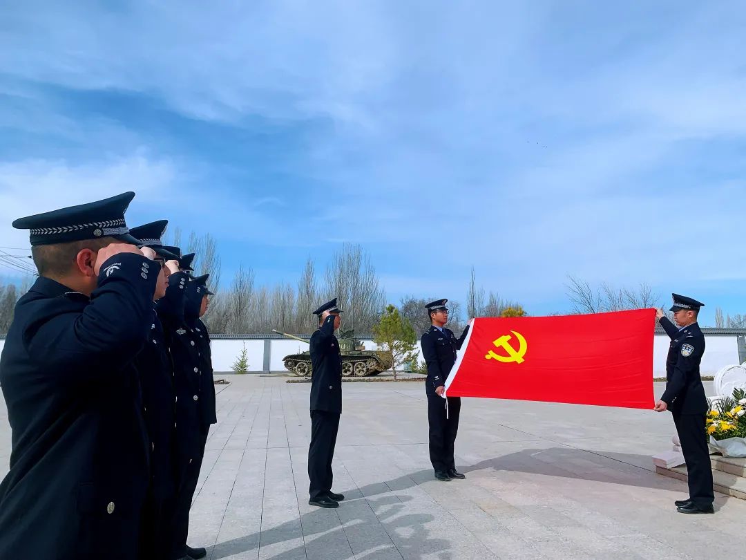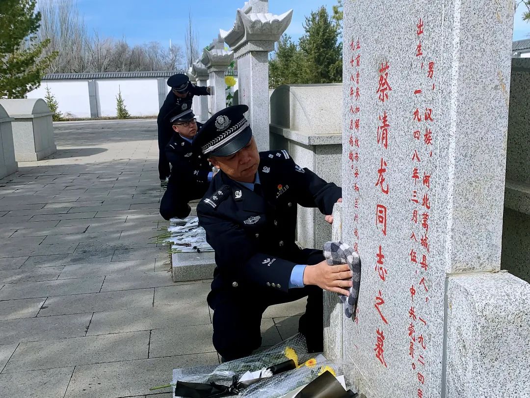 近日,乌鲁木齐铁路公安局奎屯公安处塔城站派出所党支部联合巴克图出入境边防检查站党支部前往塔城市烈士陵园开展“缅怀革命先烈,熔铸忠诚警魂”清明祭奠活动。