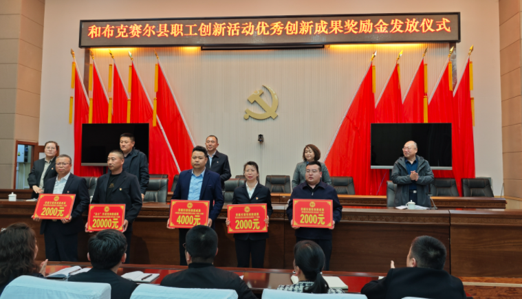 近日,和布克赛尔县县委综合楼会议室洋溢着欢乐的氛围,和布克赛尔县职工创新活动优秀创新成果奖励金发放仪式上,获奖集体和个人领取了13.92万元奖励金。