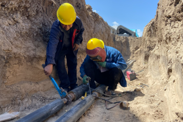 民宿供排水管道焊接。塔城地区融媒体中心通讯员李静摄