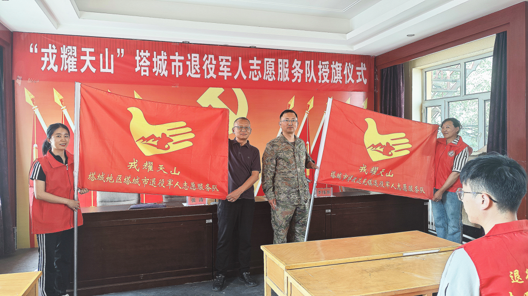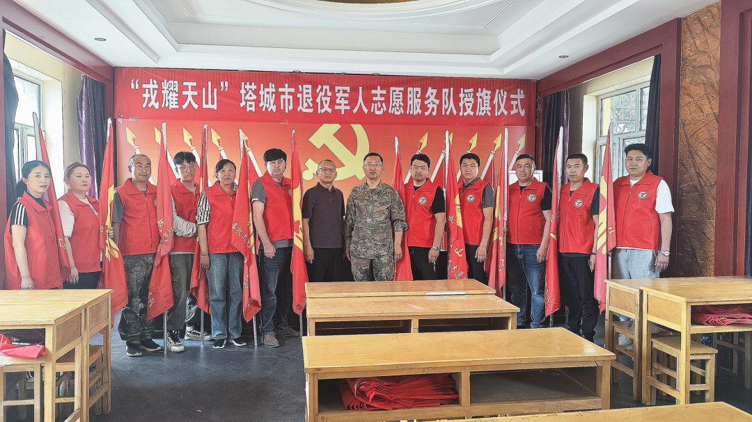 塔城市退役军人事务局联合塔城市人武部举行“戎耀天山”志愿服务队成立暨授旗仪式,发挥退役军人在志愿服务中的引领作用,增强退役军人群体的凝聚力和向心力。塔城市退役军人事务局、市人武部及各乡镇(街道)退役军人服务中心(站)干部参加授旗仪式。