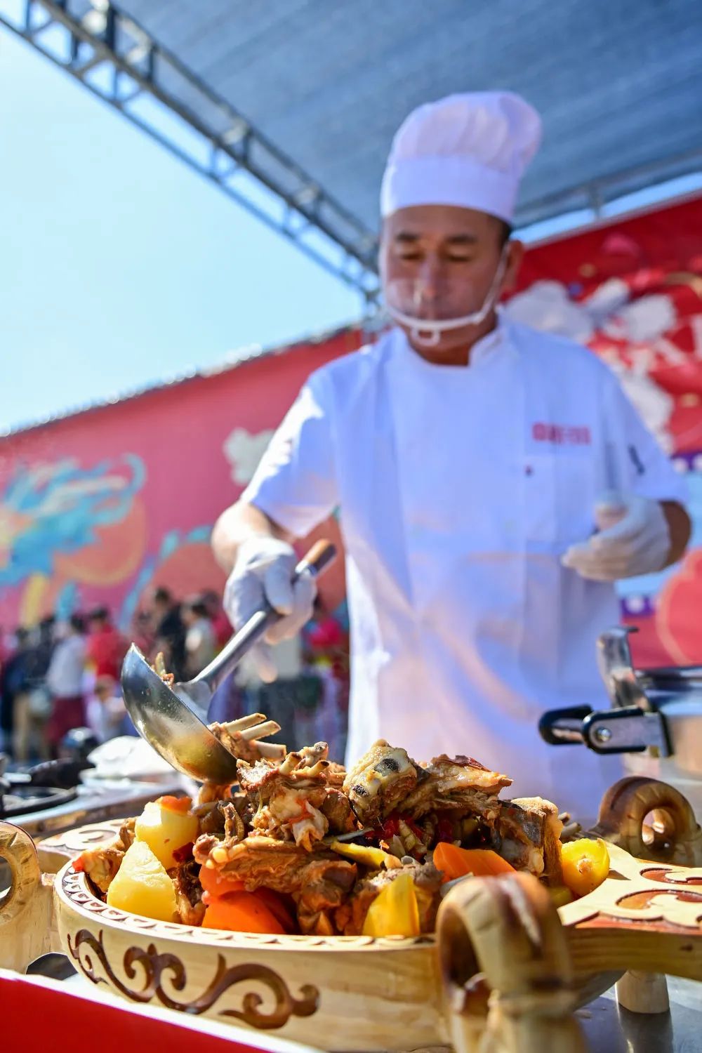 6月2日,新疆塔城地区裕民县举行首届巴什拜羊烹饪大赛,32位专业厨师、民间厨艺达人以巴什拜羊为主要食材,进行厨艺比拼,吸引众多食客慕名而来。本次烹饪大赛旨在促进乡村旅游产业与地方特色餐饮产业有机融合,进一步推动乡村旅游、助力乡村振兴。