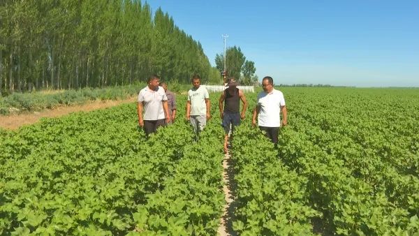 村民撒占国说:“今天技术员到地里给我指导棉花田间管理,技术员说棉花打顶后可以增加产量,地里有红蜘蛛,要加强叶面打药,以后我就按照技术员教的方法,加强田间管理。”