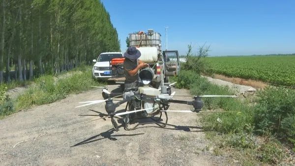 村民刘丰胜说:“在技术员的指导下,棉田全部进行了滴水施肥,用无人机进行叶面喷施杀菌剂和叶面肥。今天农业技术员又来现场指导,后期,我们继续加强管理,促进棉花生长。”