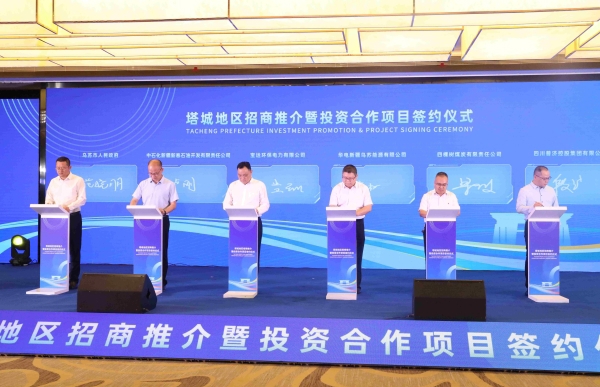 签约仪式上,乌苏市委副书记、常务副市长范晓朋宣传推介了乌苏自然资源、区位交通、产业发展等优势以及良好的投资环境,并代表乌苏市人民政府与武汉天源环保股份有限公司、西安凤育生物科技有限公司、四川省普济控股集团有限公司和吉林省亨达种业有限公司等8家企业签订招商引资协议,签约金额47.57亿元,涉及油气加工、煤炭煤电、农副产品深加工、纺织服装、新能源等领域。