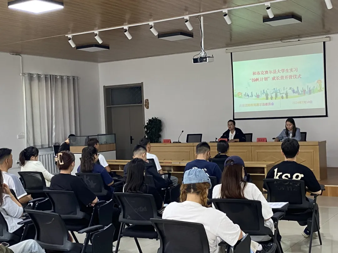 近日,和布克赛尔县团委举办“扬帆计划”返乡大学生成长营开营仪式,团县委全体领导干部、返乡大学生参加活动。