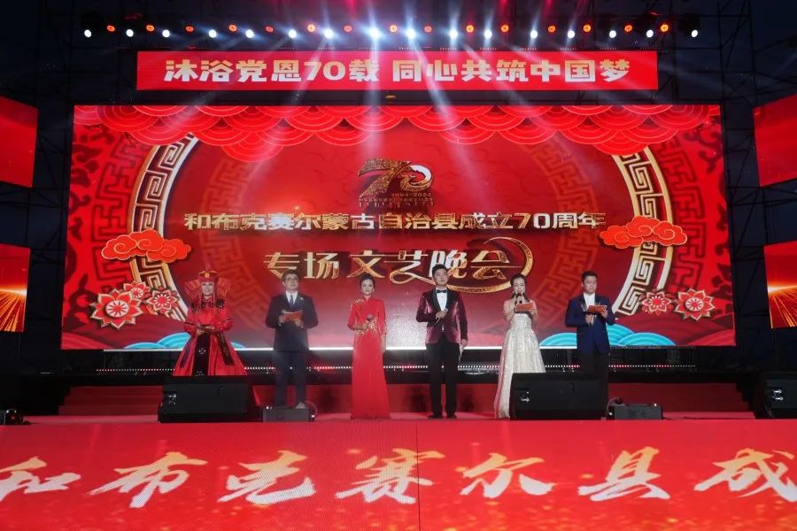 7月30日,和布克赛尔蒙古自治县成立70周年专场文艺晚会在江格尔文化园精彩上演。
