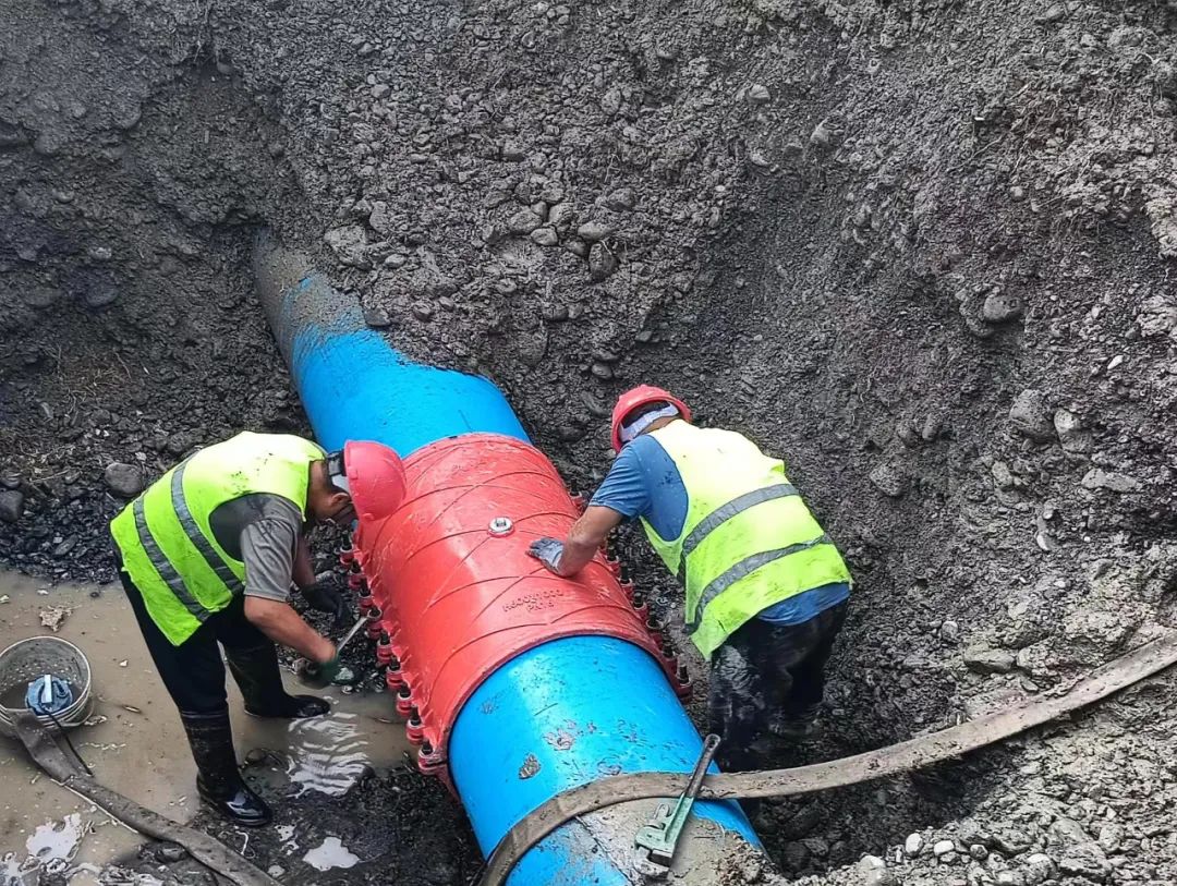 经过近7个小时抢修,漏水管道于下午19:00维修完毕。虽然现场还未回填,但为了保证居民正常供水,工作人员决定先放开600管线进行供水,后续完成回填工作。