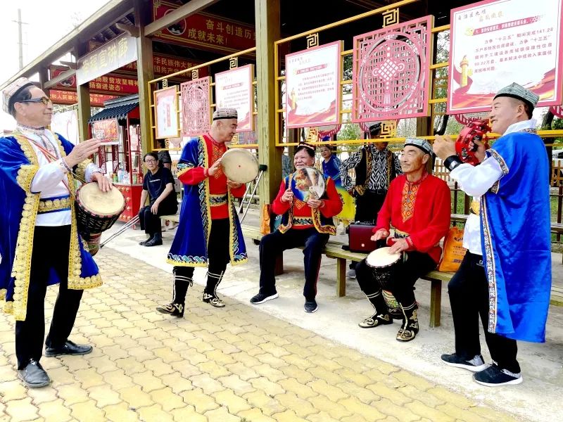 阿克铁克切村村民在幸福宣讲廊载歌载舞。