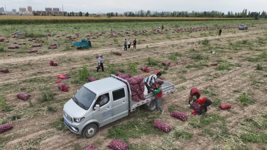 洋葱迎来采摘季,大量的用工需求也吸引了当地及周边的村民前来务工,既解决了种植户的采收难题,同时也增加了村民的经济收入。