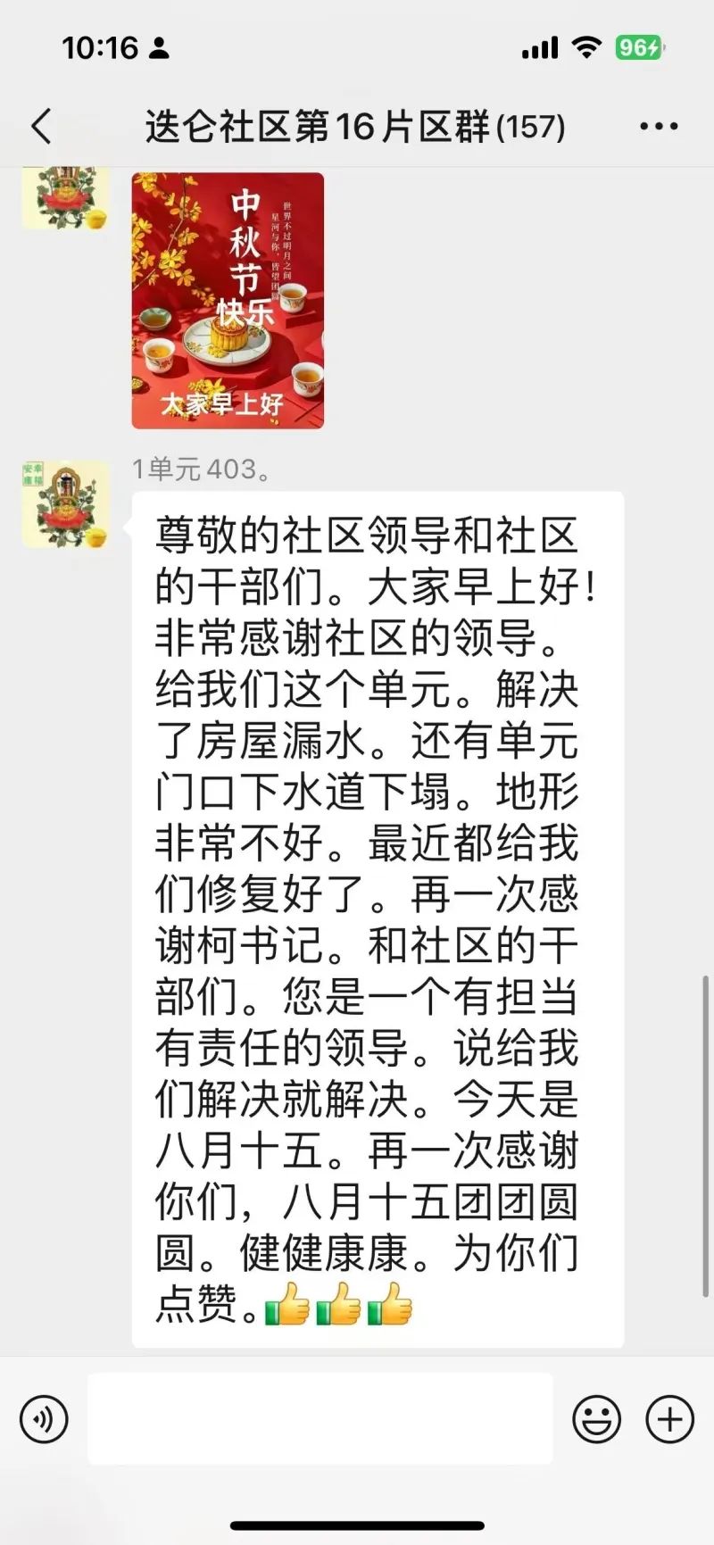 这几日,和布克赛尔县和什托洛盖镇迭仑社区群里格外热闹,居民们的消息一条接着一条,点赞的表情不断刷屏,大家为社区干部送祝福并真心感谢社区干部为居民办好事、解决难题。