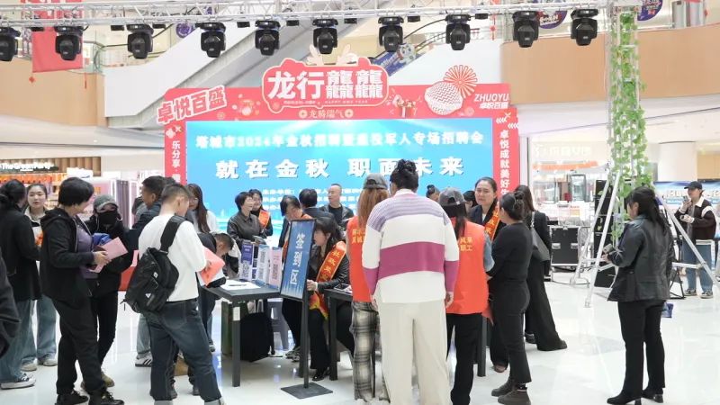 9月27日下午,塔城市2024年金秋招聘暨退役军人专场招聘会在卓悦百盛购物公园举行。