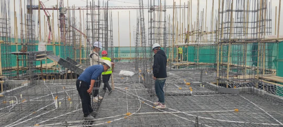 10月5日,在沙湾市湘江润源农业科技有限公司辣椒产业项目工地,数十名工人正熟练地进行钢筋捆扎作业,工人有序铺设钢筋、模板安装,为混凝土浇筑做准备。