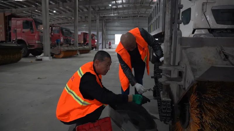 近日,在检修机械过程中,工作人员及时维修和更换零部件,确保每台机械都处于最佳状态。仔细检查每个器械的连接部位,认真查看刷毛的磨损程度,不放过任何一个小细节,对磨损严重的工具及时进行更换,以保证除雪效果。