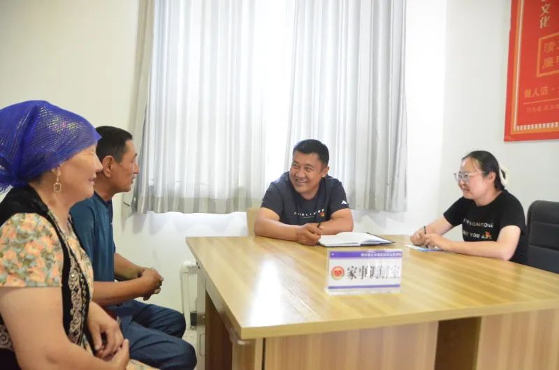 人民调解员在阔克加依达克社区的调解室及时解决辖区居民矛盾纠纷。