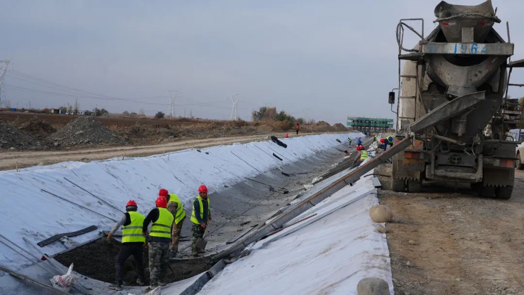 兵地共建柳西干渠混凝土浇筑。塔城地区融媒体中心记者王高升摄