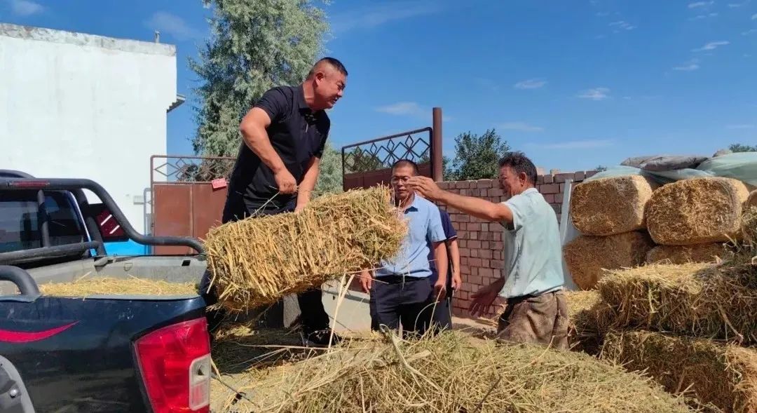 今年7月10日,正是饲草料青黄不接的时节,127团11连党支部书记务圣杰一行到昌德村为4户结对帮扶的困难村民送来了50捆饲草料,暂缓了养殖户的燃眉之急。并走进村民土拉宏·尼孜阿洪的牛圈,了解牛近期饮食和生长情况,讲解了牛的疾病防控知识和饲养管理等技术。