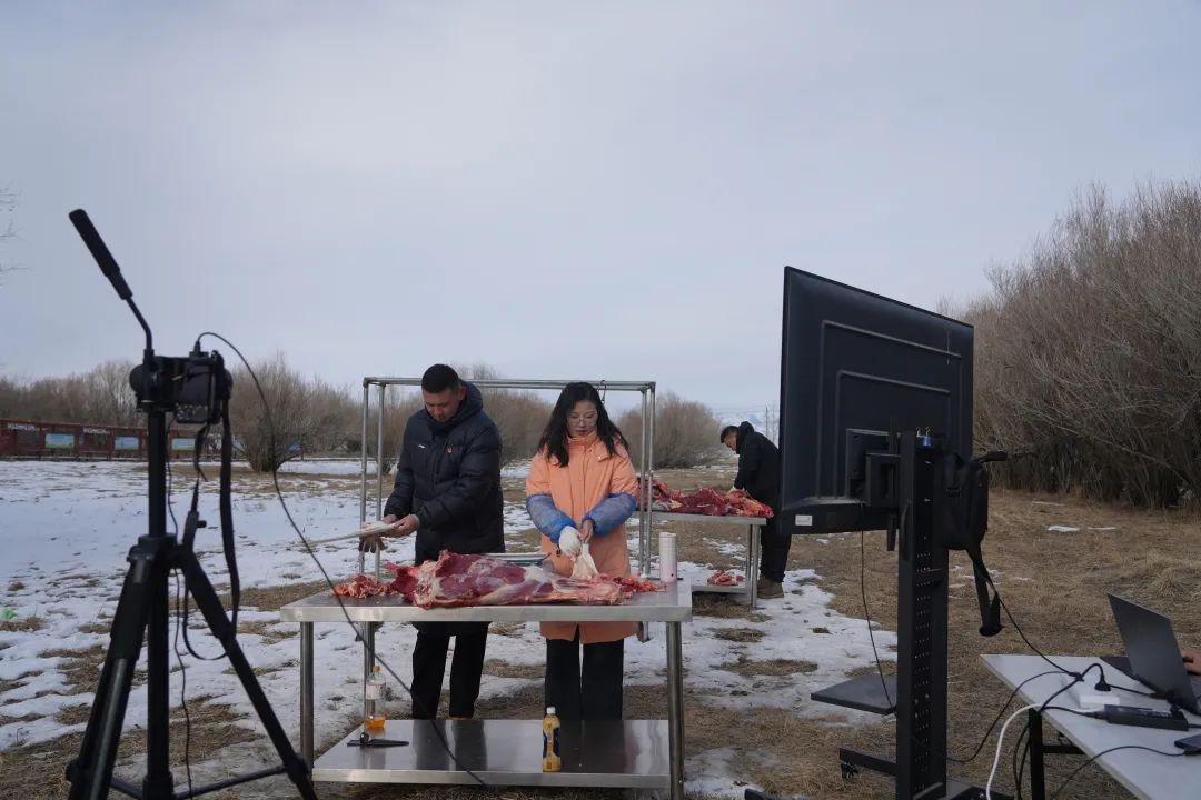 “大家好!这里是地处祖国西北边陲的小县城——英雄史诗“江格尔”的故乡和布克赛尔蒙古自治县。镜头里的是刚从屠宰场拉回来的新鲜牛肉,这是不带骨的前腿肉……”12月1日,在银装素裹的赛尔山脚下,一场线上销售牛肉的活动正在热播中。