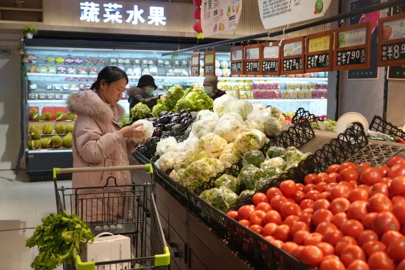 市民在超市买菜。塔城地区融媒体中心记者王婷摄