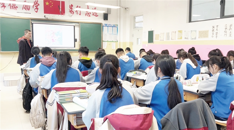 □裕民县第一中学学生在认真听讲。 本报记者热瓦·阿克苏瓦提摄