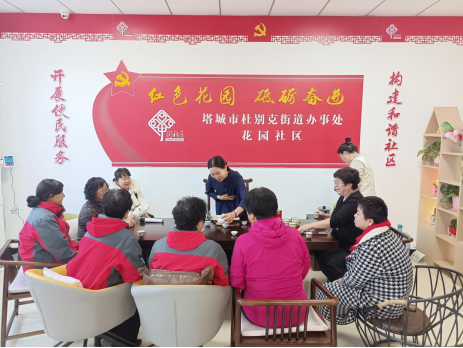 塔城市杜别克街道花园社区召开居民“茶话会”听民声。塔城地区融媒体中心通讯员胡金芳摄