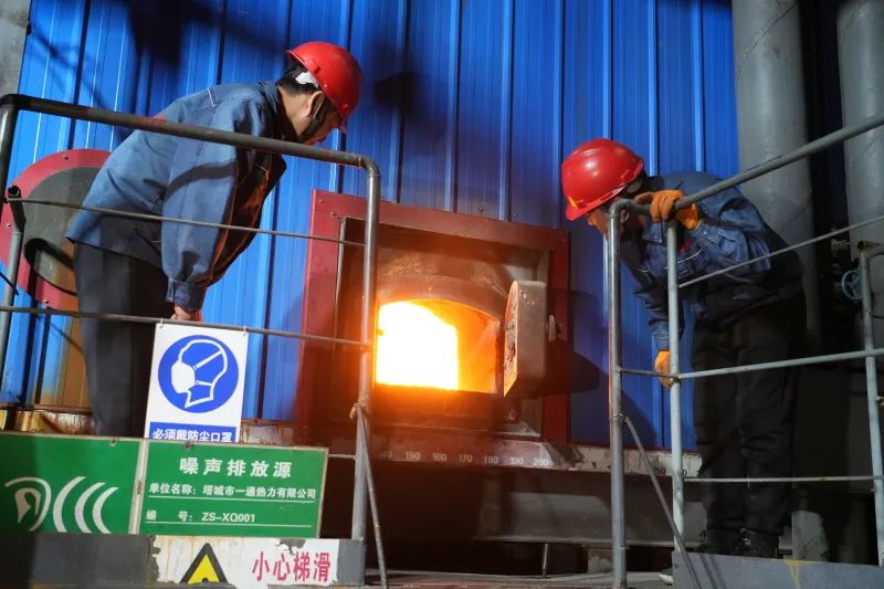 工作人员按规定打开炉门查看燃烧情况。塔城地区融媒体中心记者阿拉新·素德别力克摄
