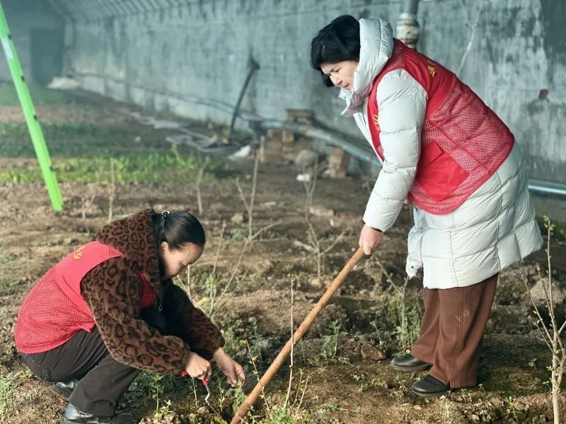 2月25日,在乌苏市塔布勒合特乡的水果蔬菜大棚基地里,党员志愿者们正在除杂草、翻土地,干劲十足。