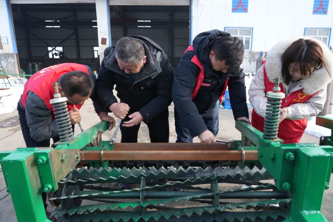 2月24日,在柳毛湾镇皇渠新村广大农机合作社院内,党员服务队就地开讲,手持检修工作,边操作边讲解,通过理论教学与实训操练相结合的方式,提升群众对农机专业知识的认识,确保机械“健康”上岗。