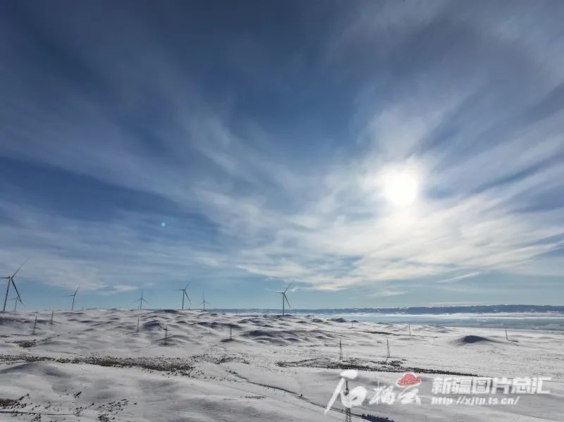 在托里县老风口风区,巨型风机擎天而立。托里县融媒体中心供图